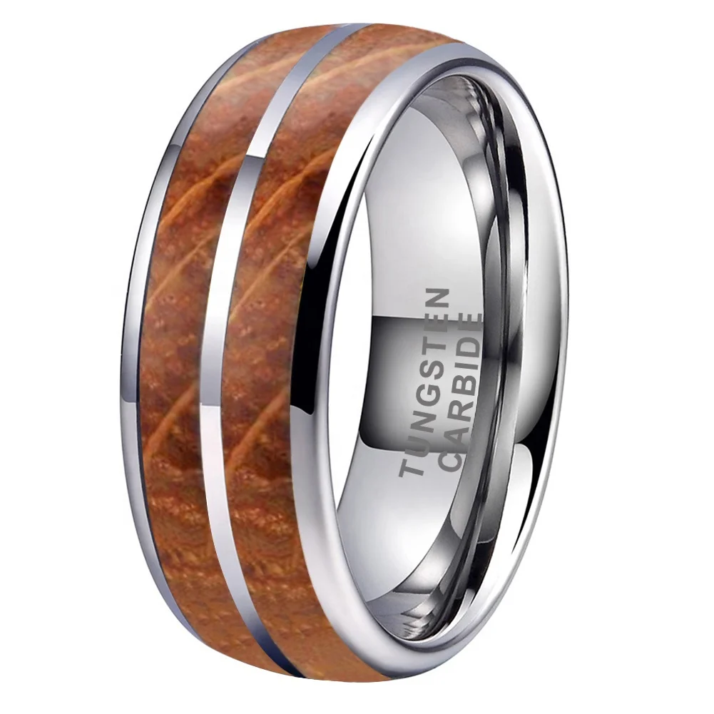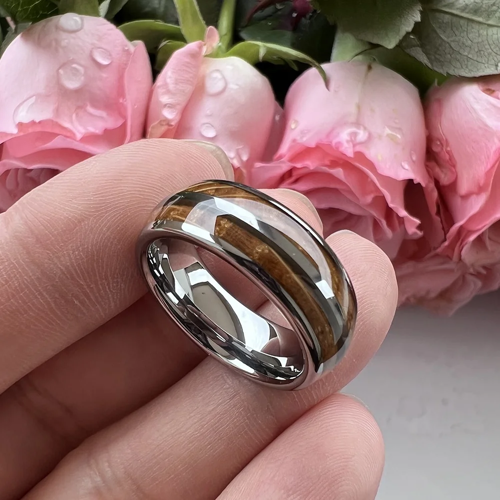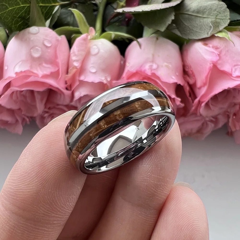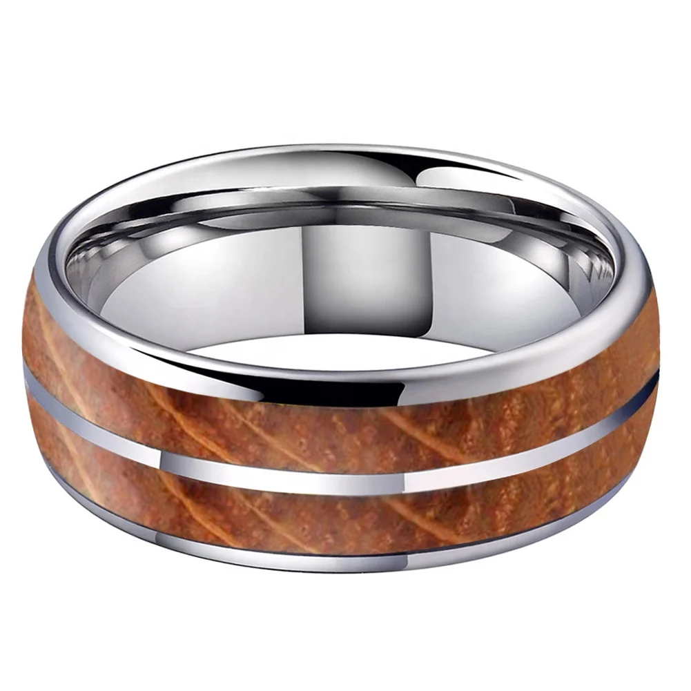 Coolstyle Jewelry 8mm Wholesale Whisky Barrel Oak Wood Inlay Tungsten Carbide Ring for Men Women Fashion Engagement Wedding Band